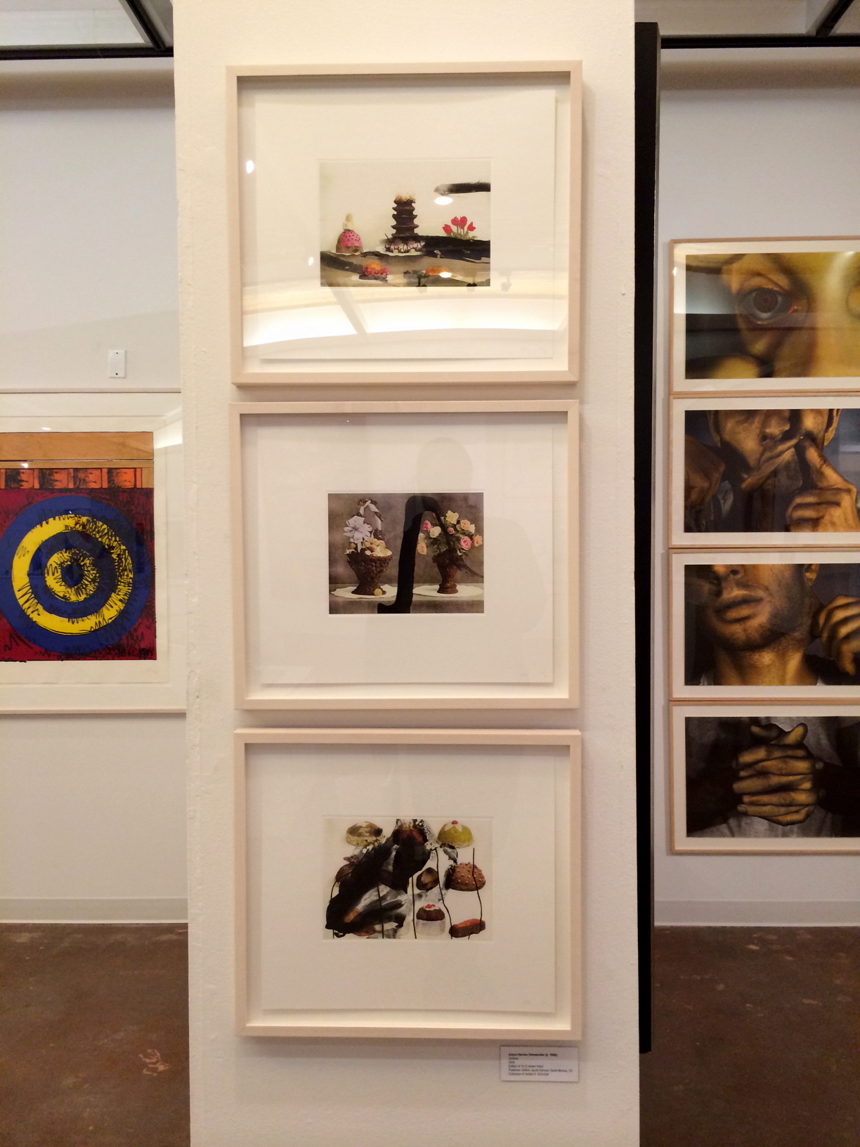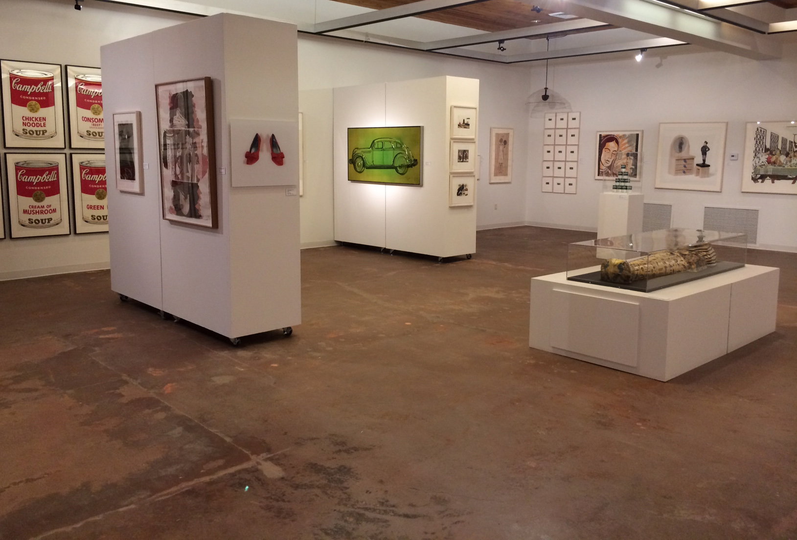 The transformation of an iconic structure for traditional religious worship into one of secular, artistic worship, is emblematic of the type of manipulation and transmutation that is at the heart of this first exhibit in KAC’s new space. In Picturing the Iconic, 90 works from the foundation of Portland collector Jordan D. Schnitzer, by artists like Bruce Nauman, James Rosenquist, Keith Haring and Andy Warhol, have been packed into the former chapel in an exhibit that is dense with associations. The works are primarily prints and works on paper, many of which show technical experimentation that belies what is often considered a secondary or inferior medium: John Baldessari’s “Stonehenge (with Two Persons)” — in which the faces of the tourists have been obscured by circles, and the famous landmark reduced to cutout forms — has been printed on handmade paper so thick the iconic form seems a glued-on addition; Claes Oldenburg’s 1968-1970 “Profile Airflow (Axom & Platzker 59)” combines a cast polyurethane relief of the car over a lithograph print, to make a work that is as much sculpture as it is printmaking.