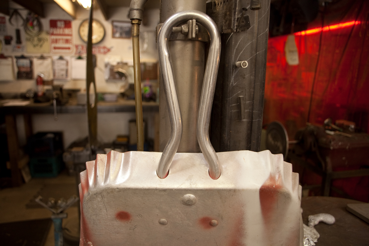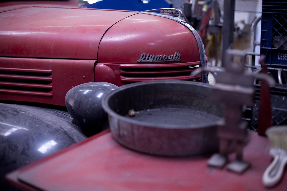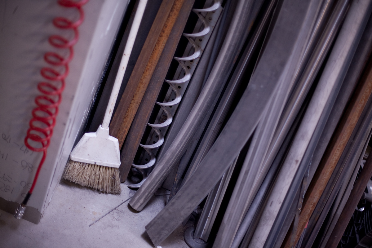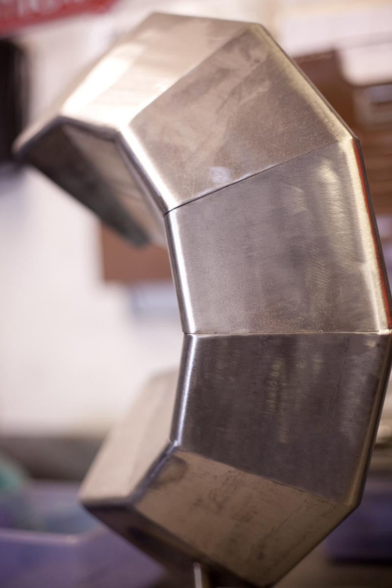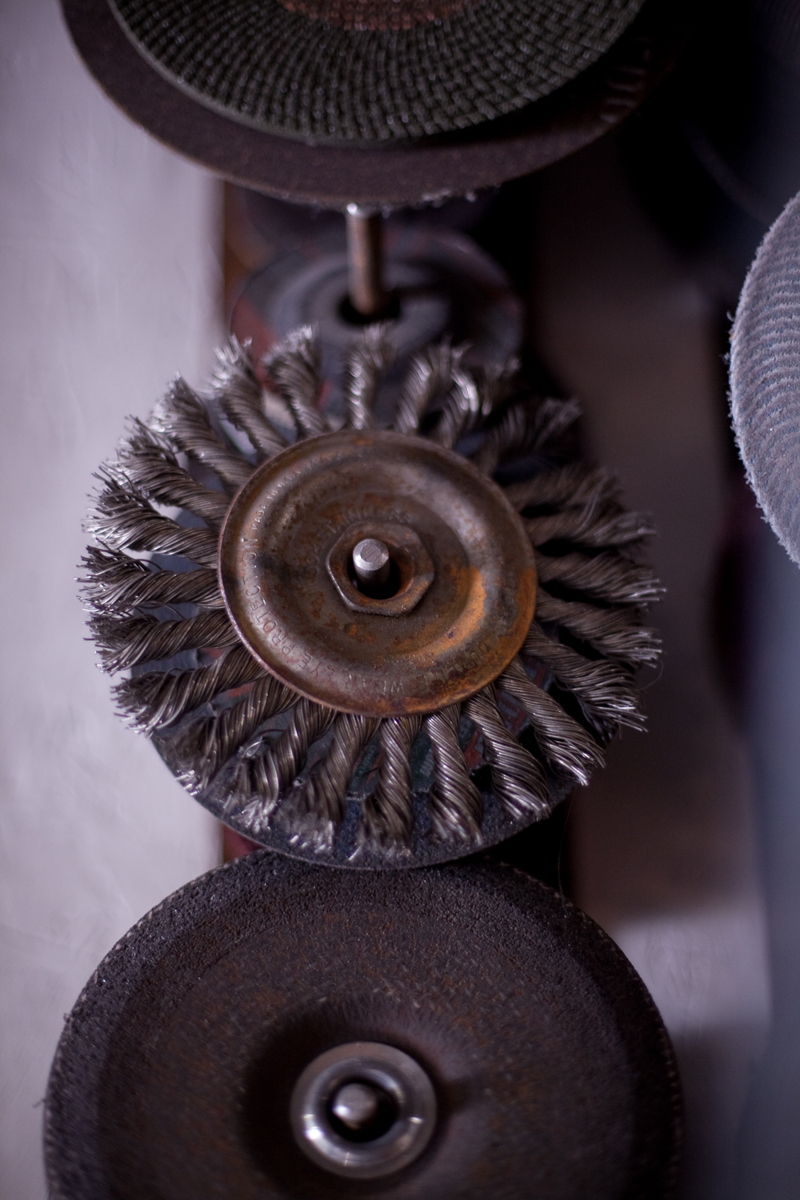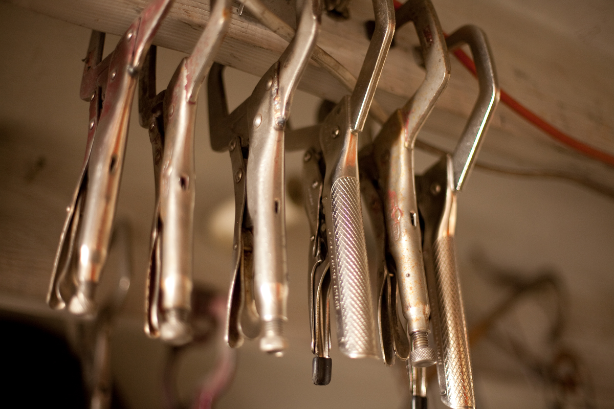 Dan Toone has spent most of his days doing metal work and welding in the food and dairy industry. In his free-time, he welds his own artistic creations, some of them out of scrap materials from his day job, in the studio he and his son built in Taylorsville. The two-story, 1200 square-foot structure features a storage loft, accessible by stairs that can be hoisted up and down. Six skylights flood the space with natural light, a pot-belly stove in the center provides heat, and a collection of signs adorn the walls . Scrap metal may pile up in the driveway, but inside the materials for the sculptures he and his son, Joshua, create are placed in an orderly fashion -- a necessity for working efficiently but also for making room for the studio's other resident, a 1939 red Plymouth truck Toone hopes to someday get in working condition so he can use it to deliver sculptures.