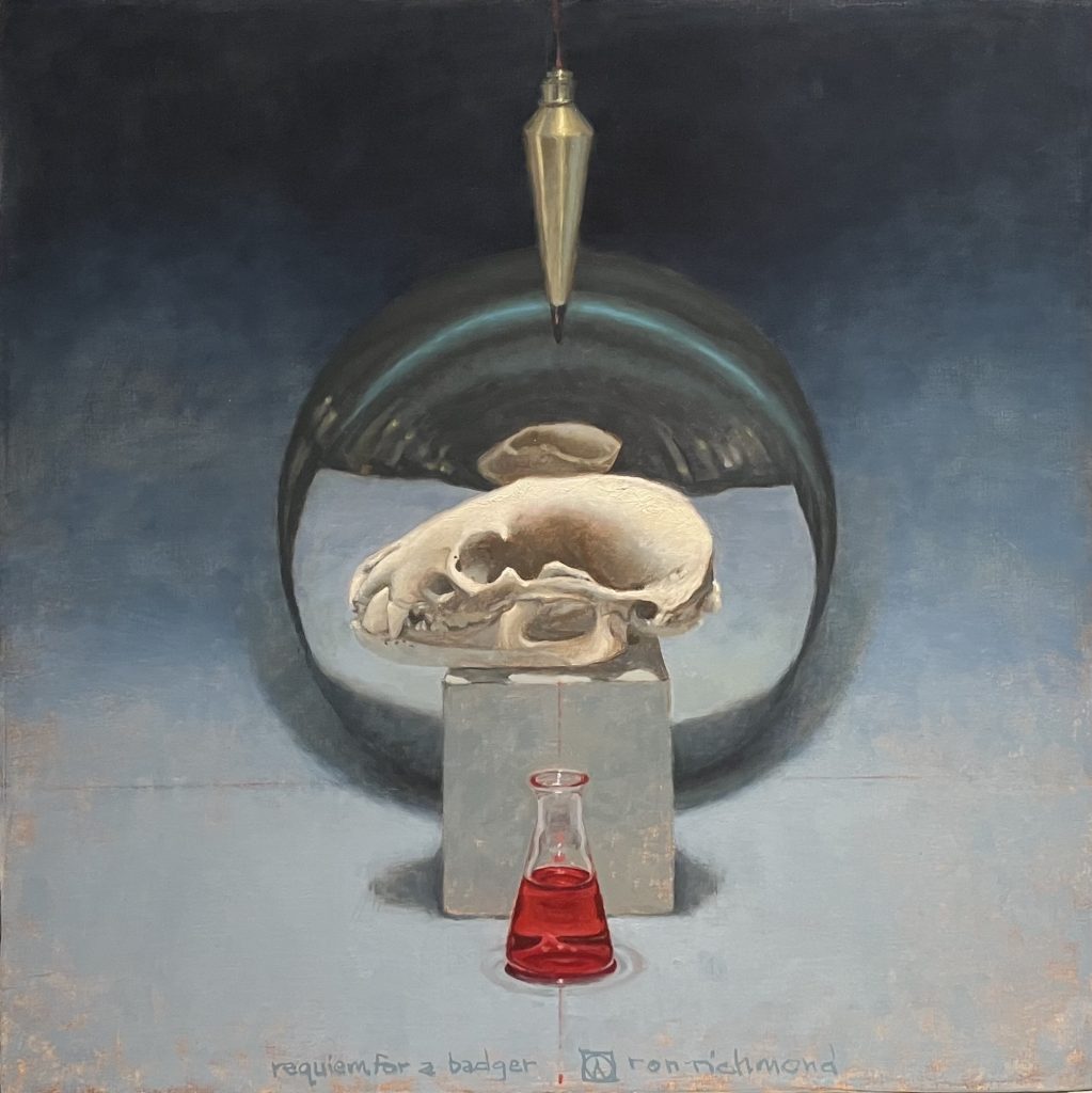 One departure that could have done a lot to bolster Spirituality awhile ago is Ron Richmond’s “Requiem for a Badger.” This supreme realist usually combines visual specificity with interpretational ambiguity, so that his incandescent visions draw us out of ourselves and into an infinitely deep well of speculation and possibility. Here, however, he plunges just as sharply into the specifics of material being, in a reversal I can’t imagine ever asking for, but am ever so grateful to witness.