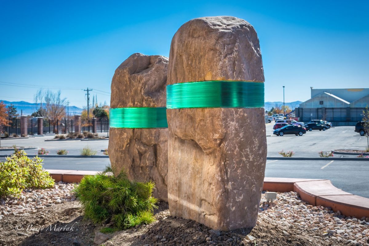 Weston Lambert, who moved to Utah two years ago from New Orleans and shares space in Spectrum Studios, South Salt Lake, with glass artists Dan Cummings and Brian Usher says he, too, wanted to create “Reconnect,” at the West Valley DABC store because working on a larger scale “presents challenges I don’t encounter in my smaller gallery works—challenges that I really enjoy solving.” He adds that a good portion of the DABC project “required coordinating various fabricators/manufacturers—engineers for the foundation, concrete workers, welders for the internal structure, stone masons for the cutting/coring of the stone, monument movers for the installation, water-jet cutters for the glass, advice from glass fabricators from New York to California. It’s a huge undertaking to make sure it all gets done and done on time. I love the process and the fact that if you collaborate with others, you can create amazing work that you couldn’t accomplish on your own.”