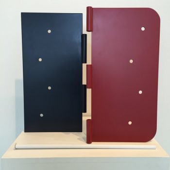 “Unhinged” by J. Vehar-Evanoff, metal sculpture, 20″ x 21″ x 13″