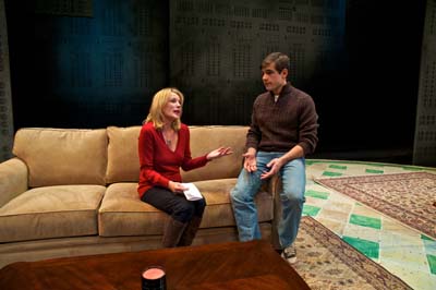 The young man trying to get in to Harvard is Jordy, played by Jason Ralph in his Pioneer Theatre debut. Ralph is convincing as a 17-year-old who has feigned a desire to follow in his father’s footsteps for so many years that it may just become a lifelong condition. He plays sports, takes Advanced Placement classes because that’s what he’s supposed to do, and his favorite subject in school is lunch. Jordy’s first attempt at the SAT resulted in less than ideal scores so his mother has hired Sara, a tutor and Harvard Alumnus played by Julie Jesneck, also new to Pioneer Theatre. Sara is a bright young woman rapidly approaching 30 and she is clearly a little dismayed by her life’s path. She is an Ivy League graduate and an aspiring author, but here she is, a tutor giving pointers on the SAT, the very test that we’re told determines your future. Sara obviously did well and has a keen grasp of English literature and the world around her, yet her future has not played out at all the way she imagined it. Jesneck portrays Sara with the same urgency a person feels on the morning of the SATs. While her performance is effective the audience might find themselves feeling a bit frenzied just by watching her intense portrayal of an academic go-getter who played the game just right but feels at a loss.