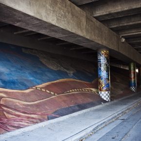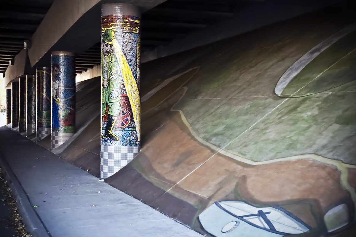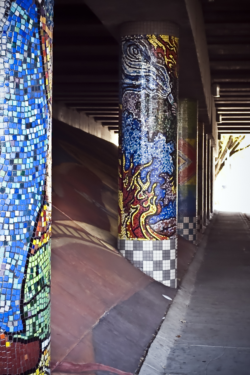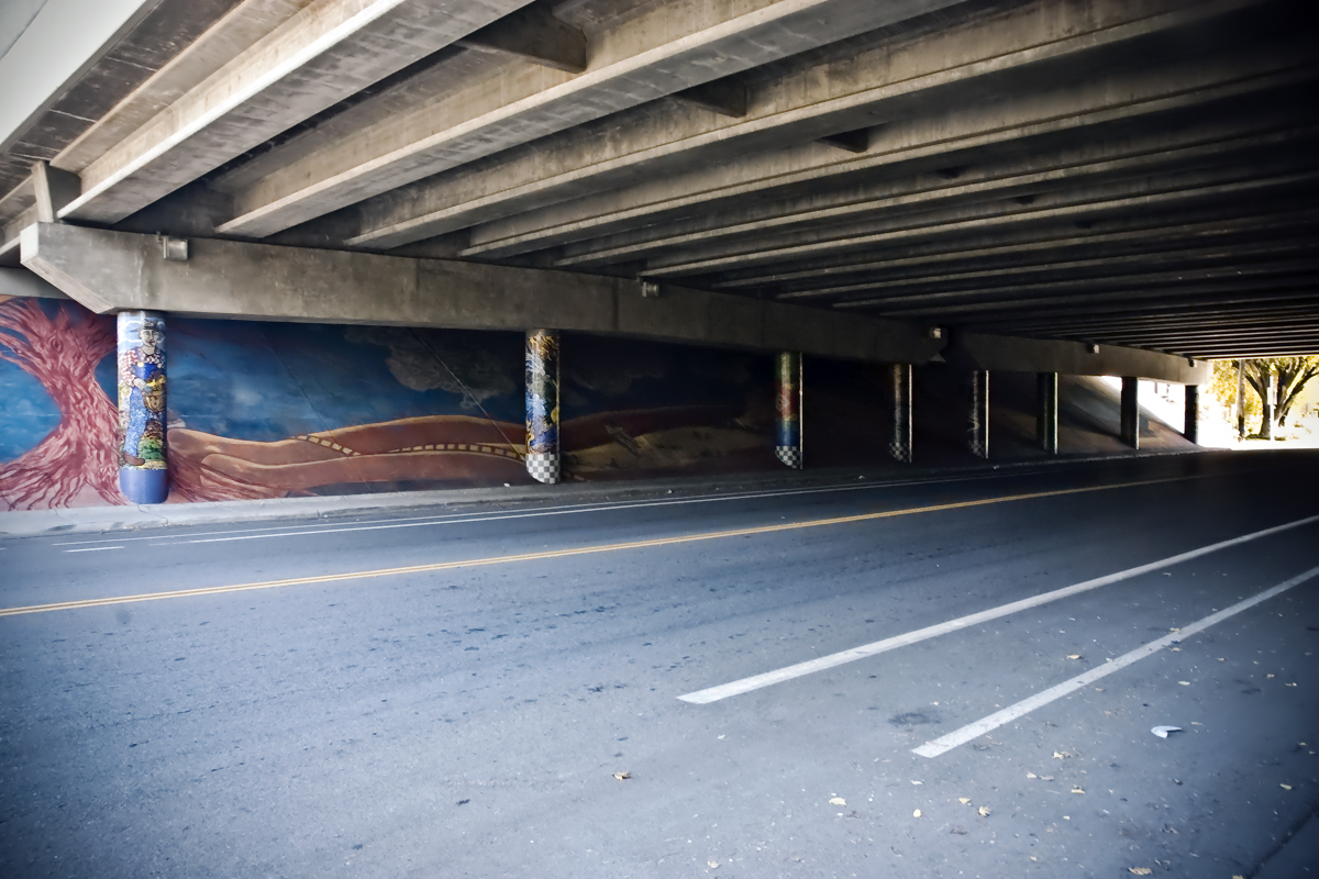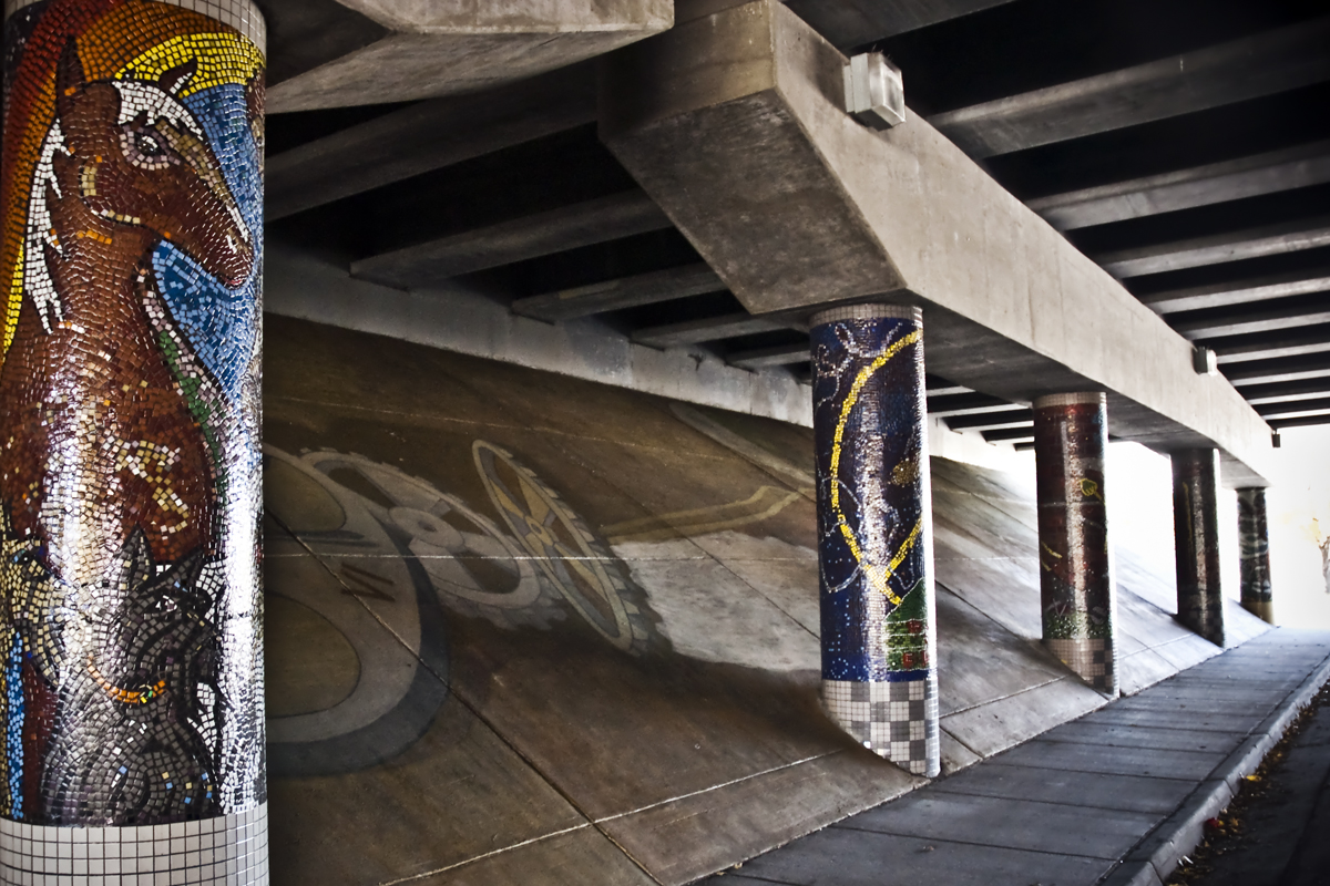 In October 2008 we first reported on Salt Lake’s Bridge Over Barriers, saying the project to transform the underbelly of an I-15 overpass between the Guadalupe and Jackson neighborhoods of Salt Lake into a work of art might take years to complete. Our prediction proved prescient: four years later the 22,000 square foot work of art has finally been completed. Shalee Cooper, our former image editor, biked over to 300 North to take a look at the project and brought us back these images.