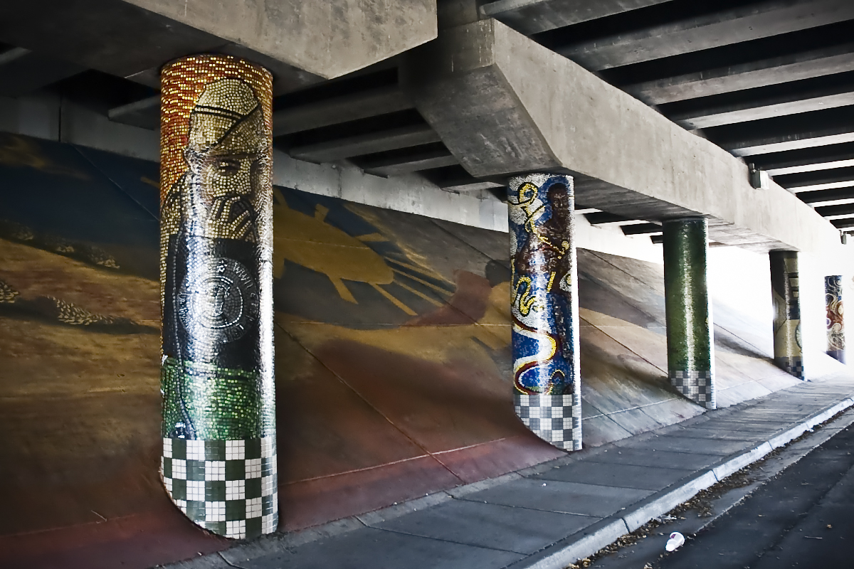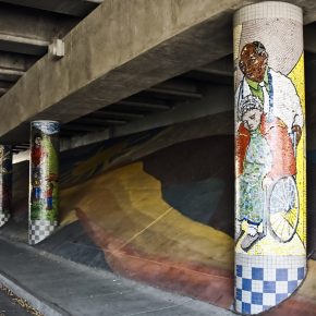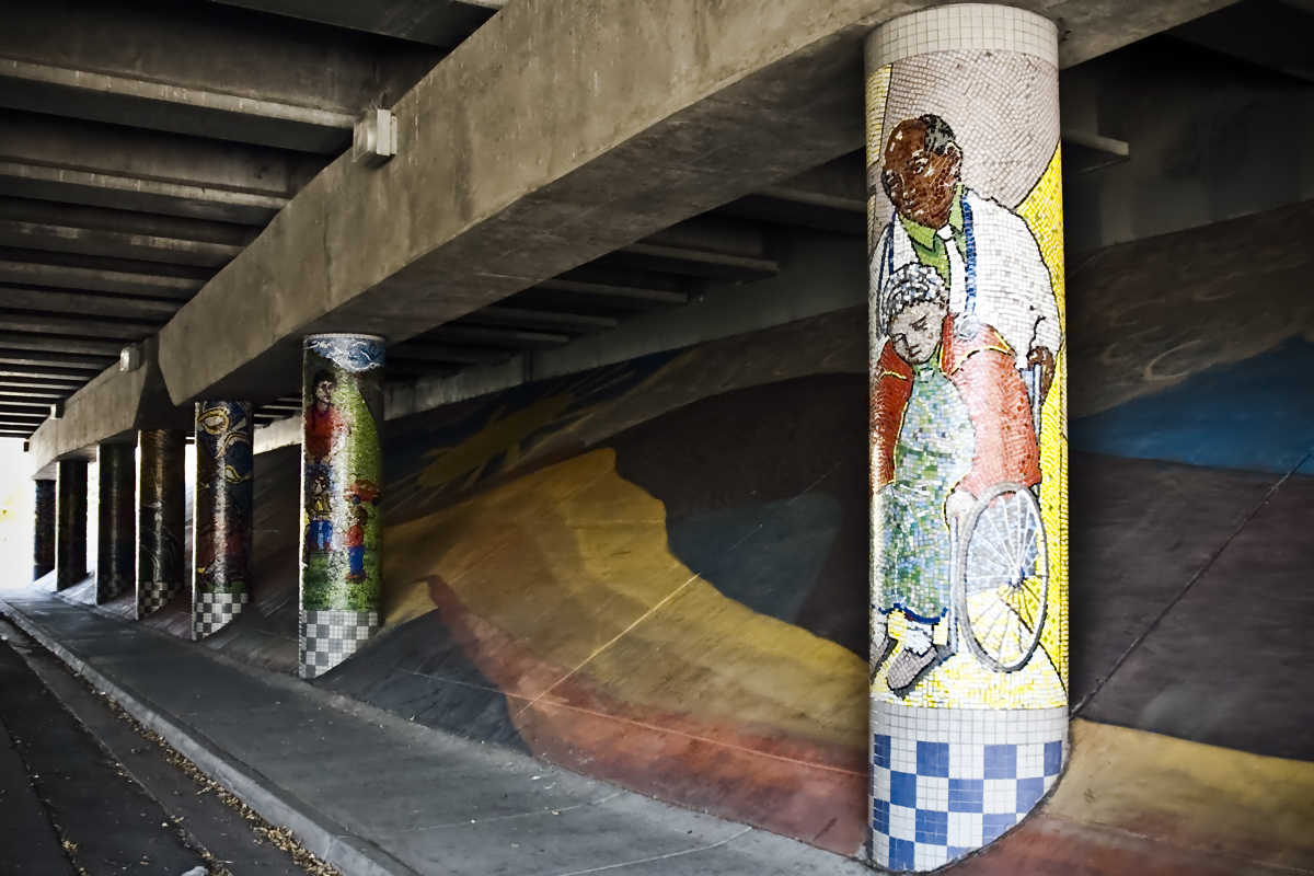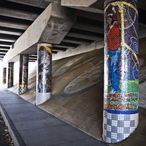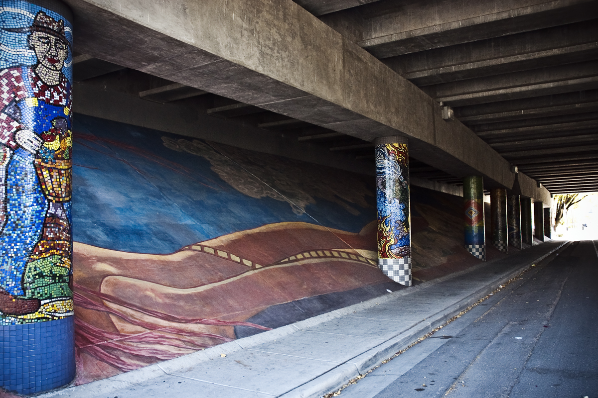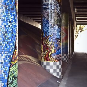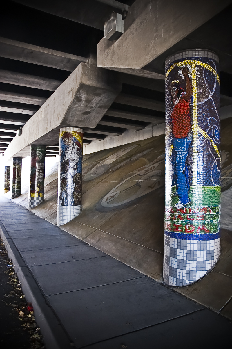 In October 2008 we first reported on Salt Lake’s Bridge Over Barriers, saying the project to transform the underbelly of an I-15 overpass between the Guadalupe and Jackson neighborhoods of Salt Lake into a work of art might take years to complete. Our prediction proved prescient: four years later the 22,000 square foot work of art has finally been completed. Shalee Cooper, our former image editor, biked over to 300 North to take a look at the project and brought us back these images.