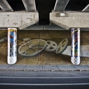 More brilliant work by Shalee on her bicycle — she will be sorely missed. And Sheryl Gillilan’s 2008 article on the Bridge Over Barriers project is a fascinating read — well worth checking out in conjunction with these magical “you-are-there” photos of a neighborhood art project that is truly transformative.