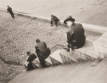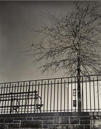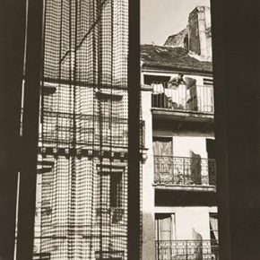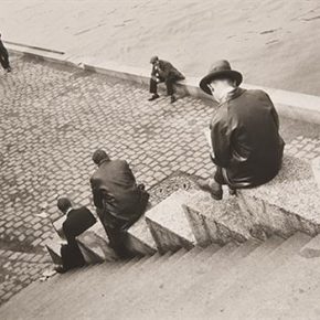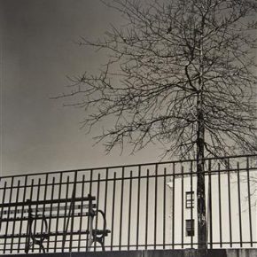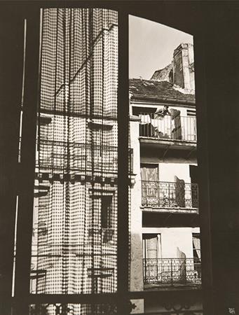 When World War II reached Paris, Bing and her husband were interned in a concentration camp. They escaped and became refugees in New York City. This is a pivotal point in Bing’s work. The images shot prior to World War II show a distinct dialogue with what was happening with photography in Paris under the influence of Brassai, Bresson, and Man Ray. The “decisive moment,” for example, is clearly seen in the image of men sitting on a stairway along the Seine with one man walking into frame at the perfect moment to be caught in the photograph. In general this earlier work is more casual and experimental. Her later work carries the same thoughtful, personal sensibility but is starker, more planned, and feels inhibited. An image taken from inside an apartment through a window looking at the adjacent building has the ethos of a person who feels stuck, who longs to be outside her prison. She adopts a medium format camera at this time — a cumbersome Rolleiflex that is used methodically and not necessarily intuitively. Her work becomes more rigid, more detailed, and quieter.