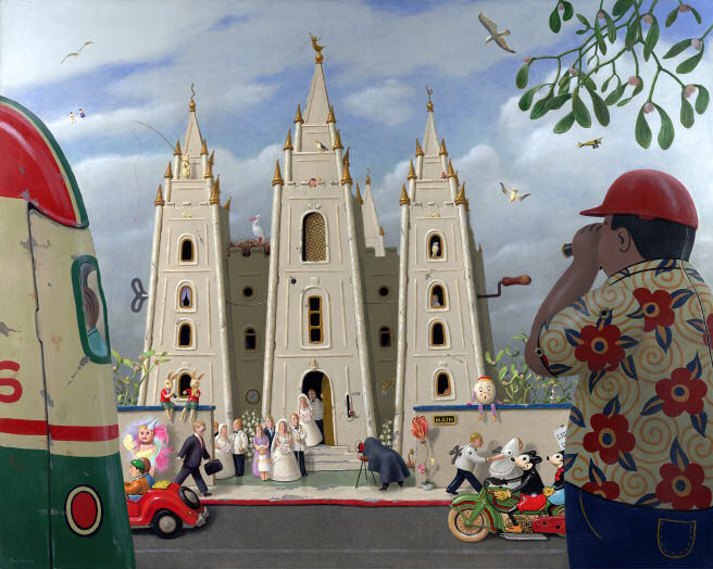 All Roberson’s works are filled with a joie de vivre. She liked having fun, and saw no reason why there shouldn’t be humor in art. She bristled, though, at the idea that her works might be considered “cutesy.” Perceptive critics noted the difference. Frank McEntire, writing for The Salt Lake Tribune in 1995, said Roberson “gives the object in her paintings — mostly well-worn clothes and old toys — a different dimensionality than what is found in today’s popular Magic Eye 3-D teasers. She dismisses visual-foolery painting techniques and her proficient skills target the observer’s inner eye as she moves deeper into surreal territory.”