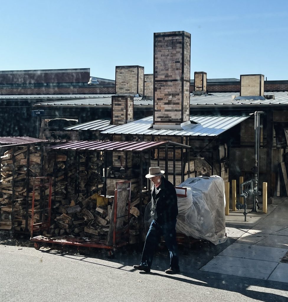 John Neely walking back to the classroom from the kiln yard at Utah State University. Image by Paige Harper.