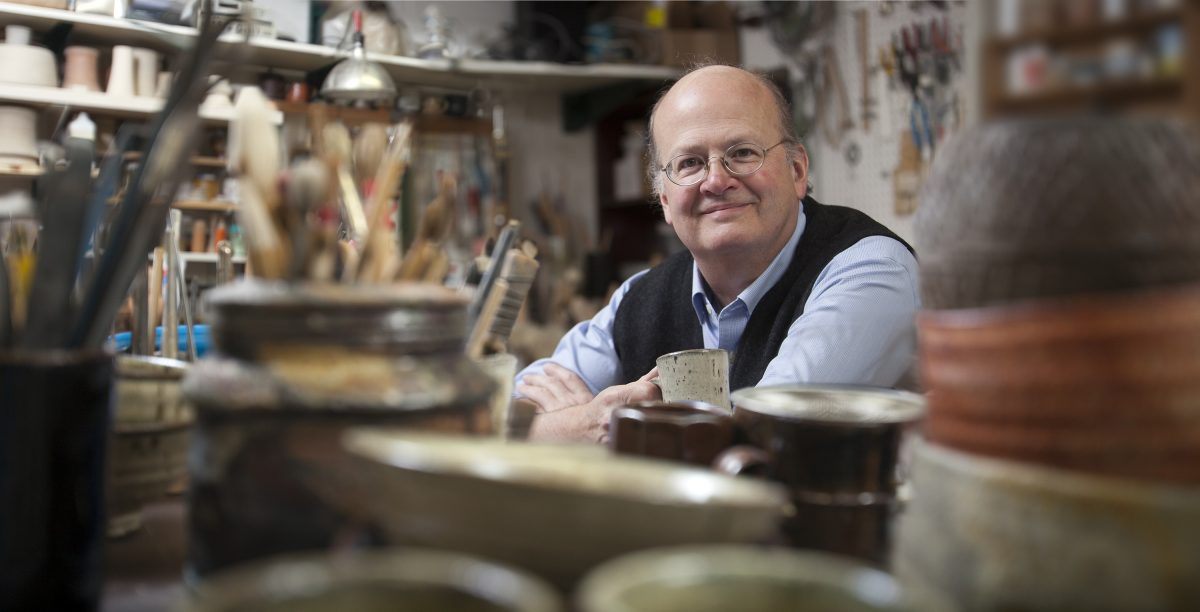 John Neely in his studio. Photo provided by the artist to the author in 2024 as part of promotional materials for Clay Arts Utah workshop.