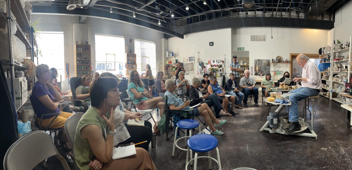Neely leads a workshop for Clay Arts Utah held at Iron Desert Arts, September 28-29, 2024. Photo by Antra Sinha.