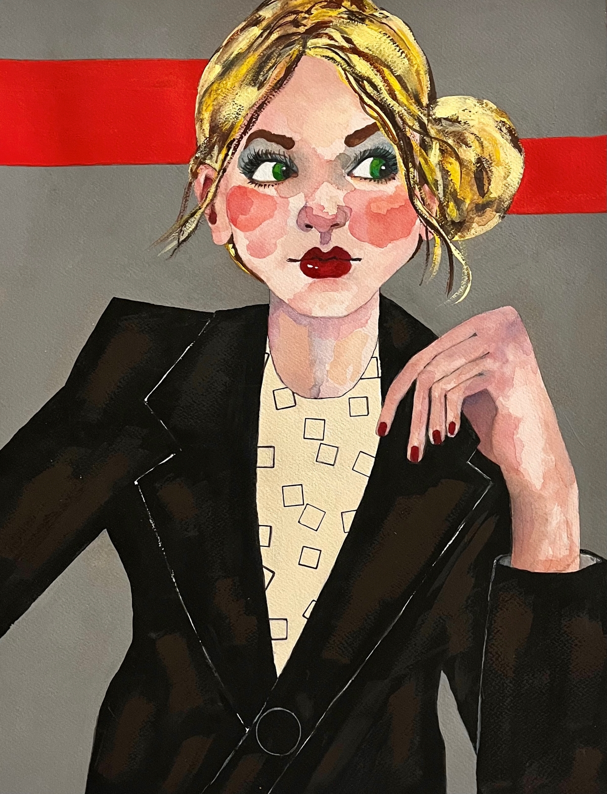 “Eyeing The Top Position,” watercolor and gouache, 15 1/2 x 11 1/2 in.