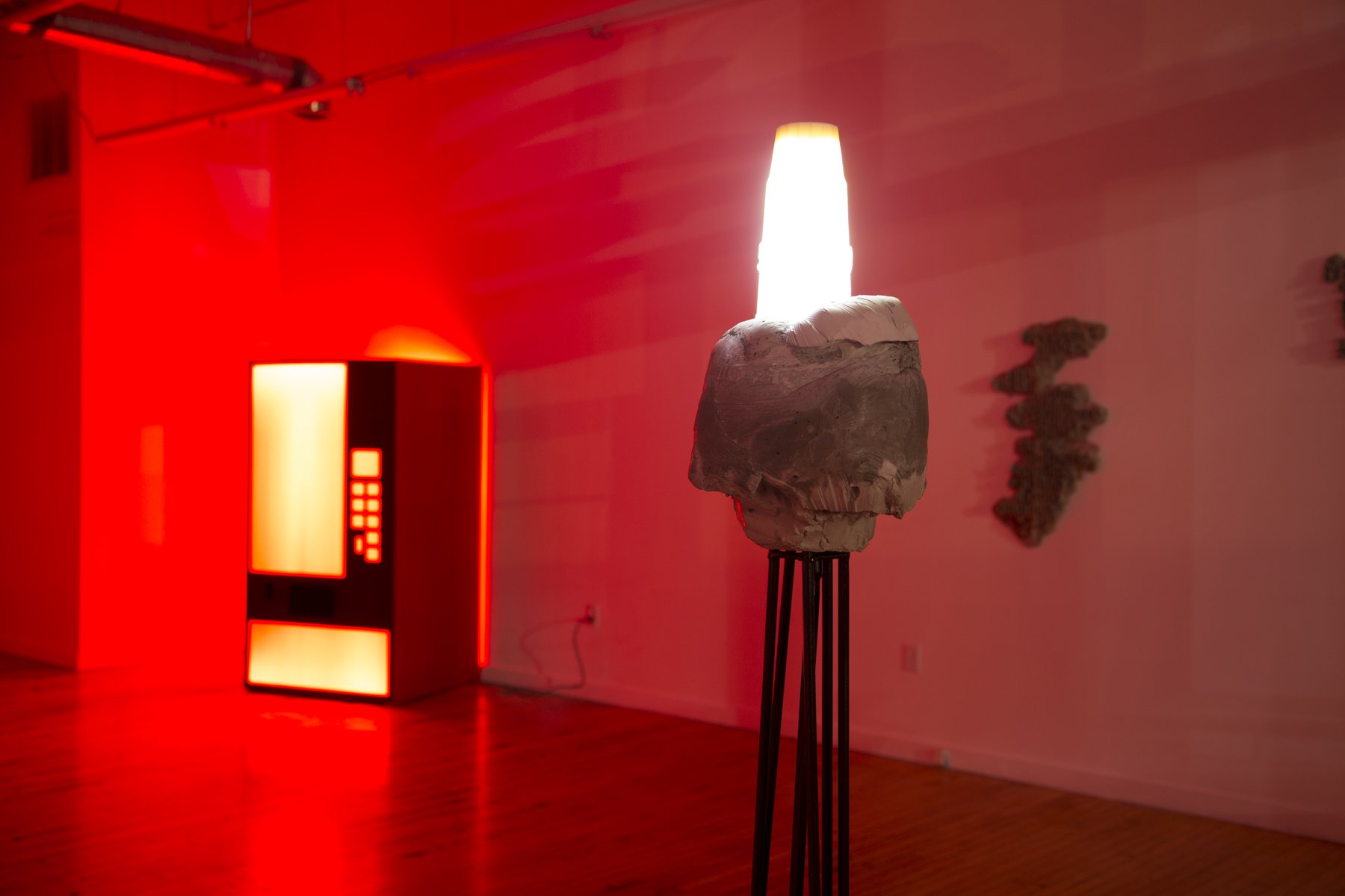 “Double Gulp Light” lights the way into this paved forest of the mind. Perched upon some rock-like formation made out of concrete, a plastic “Double Big Gulp” cup purchased from a 7-Eleven convenience store, has been turned upside down, painted white, and lit from within. This rock, at least six feet in the air, is held by five strong and straight rods of iron that only at the bottom begin to take turns and irregular curls and shoot off into unpredictable and various directions. What is the forest traveler to make of this? Plastic. Consumerism. Throw-away culture? The most elemental fabric of the capitalist western world might be the “Double Big Gulp.” It stands upon the foundation of our consumerist society… from Walmart to Gucci, from Costco to Whole Foods, from AT&T to Rocky Mountain Power. One rod might stand for money, the other power, the next greed, the other lust, the last desire. That is the physical and the tangible, or oneway of seeing it clearly. What we don’t see is reality. We don’t see the underpaid mother of four doing a double shift at Walmart, we don’t see the leather worker working with his hands for 12 hours without rest for Gucci, or the monopolistic box stores crushing small businesses. That is reality that cannot be seen and transcends physicality.