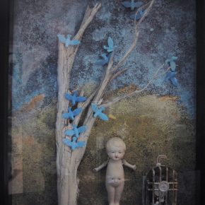No chance to once again encounter Blackerby’s evocative and arresting art should be casually missed. It’s not that she rarely shows, or that her work is hard to find. Rather, in spite of the challenge of finding material for her talismans, which partake of collage, mixed-media, and objet trouvé—the big three techniques of watershed movements like Dada and Surrealism—without really belonging in any one of them, she manages to be so prolific, as well as eager to share the discoveries that so clearly delight her, that her exhibitions tend to overwhelm audiences. The viewer unravels a few compound objects, takes in a handful of more straightforward ones, and totters off like that Monty Python character who begs to be excused, moaning “My brain is full.”