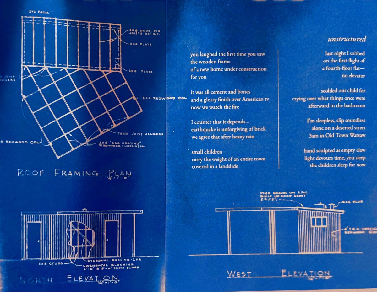 Challis doesn’t always decide upfront whether something should remain a poem on the page or become a book object or visual-textual piece.“I think I learn mostly through doing and redoing,” she says. Her projects go through many revisions, but in book arts, prototypes are central. She keeps “dozens of failed attempts” in her office—“saved as trophies.” Seeing the work as a physical object, she explains, teaches her what it wants to become. Sometimes a poem belongs on a flat page. Other times it finds a better home in three dimensions, where structure can amplify tension or release. Often, she says, “the materiality makes the final decision.”